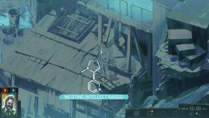 8. There is one drug for each of the four main Stats in the game. You can use this to “fix” a weakness in your character build. Low Intellect detectives might find themselves smoking a lot, while low Psyche detectives have more to gain from doing Pyrholidon. Low Physiqe detectives are prone to sucking on a bottle. Even a low Motorics detective is stupid enough to try that jump when they’re on the Lightning Rail.